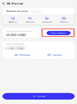 IB account holders can apply for commissions by clicking on the "Claim Rebate" button on the IB dashboard.