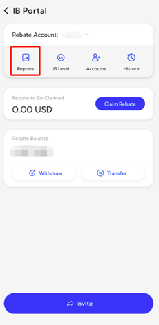 Reports for your IB rebate account can be accessed via the IB dashboard. Click "Reports" and select a date range to display rebate records for this specific time period.