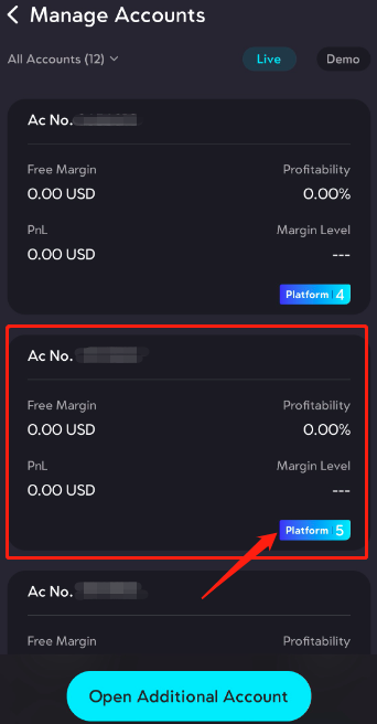 If you wish to open an additional MT5 account, simply click "Add Account" and select "MT5" as the account type. This will allow you to use the MT5 platform on your additional account.