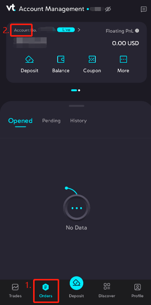 If you already have an MT5 trading account with VT Markets, you can access it on the "Manage Account" page by clicking "Account" at the top of the page.