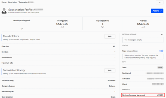 When the payment interval starts, the collection date will be notified in the subscription information, you may refer to "Next management fee payout".