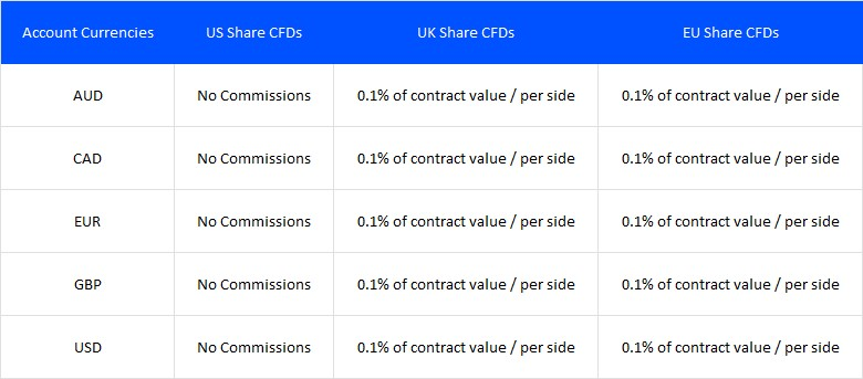 Reminder: If you trade the share CFDs in trading accounts that are not in USD, please refer to the table below for more information about the lowest costs.