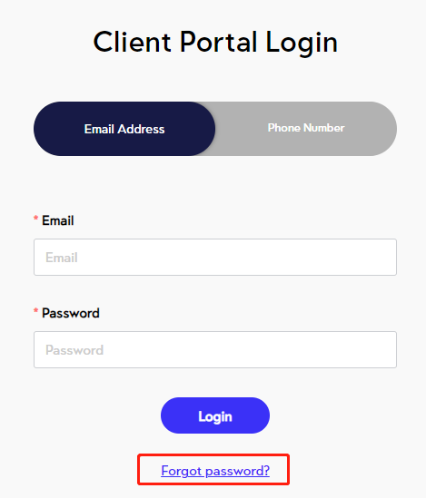 To reset your Client Portal password, click "Forgot password" on the login page, and enter your email address used for registration. We will send the password reset link to your email.