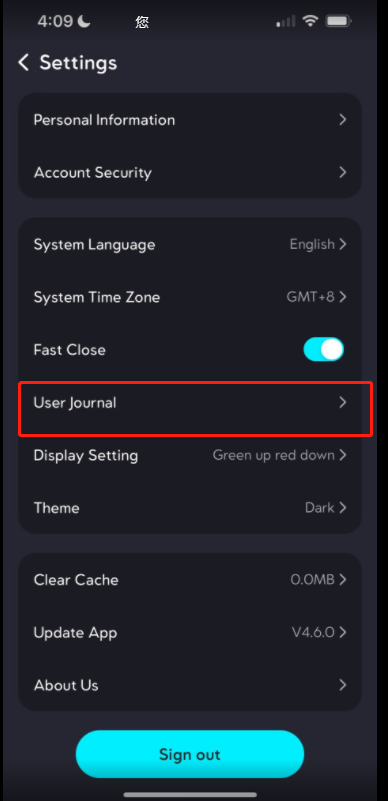 Choose "User Journal" from the available menu.